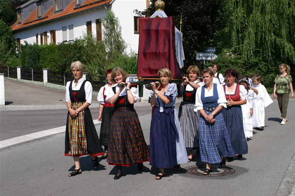Die Damen des Frauenbundes tragen die Marienfigur.