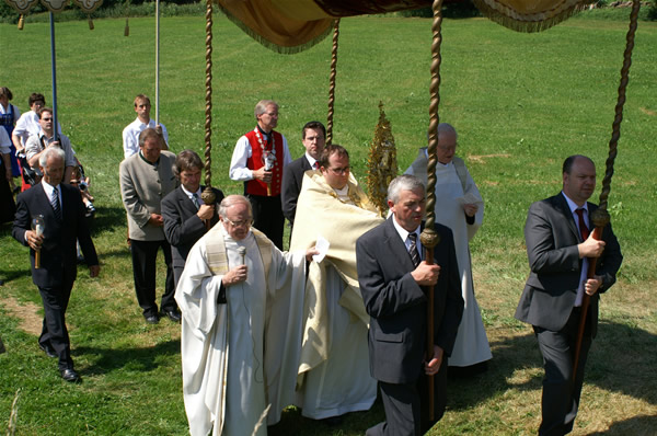 Der Bürgermeister im Eresinger G´wand mit Amtskette und Kerze folgt dem Allerheiligsten.